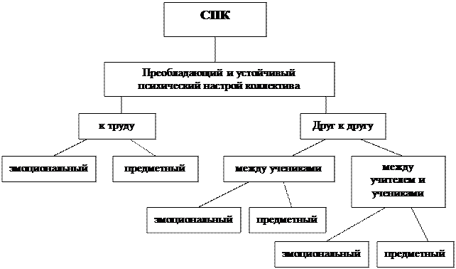 » (социальная атмосфера) появилось в научном языке недавно наряду с такими интегральными понятиями, как «психологическая атмосфера», «психологический климат», «нравственная атмосфера», «морально-психологический климат» и другие, которые получают все большее распространение в современной науке и практике. Климат социально – психологический (климат морально — психологический; климат психологический; атмосфера психологическая) — качественная сторона отношений межличностных, проявляемая в виде совокупности психологических условий, способствующих или препятствующих продуктивной деятельности совместной и всестороннему развитию личности в группе[25]. Социально-психологический климат – качественная сторона межличностных отношений, совокупность психологических условий, способствующих или препятствующих продуктивной совместной деятельности и всестороннему развитию личности в группе[46]. Социально-психологический климат представляет собой систему эмоционально-психологических состояний коллектива, отражающих характер взаимоотношений между его членами в процессе совместной деятельности и общения[44]. Анализируя вышеперечисленные определения, делаем вывод, что социально-психологический климат – качественная сторона межличностных отношений (эмоциональных, моральных, психических), включающих в себя совокупность нравственных норм и ценностей, которые способствуют или препятствуют совместной продуктивной деятельности и всестороннему развитию личности в группе и которыми руководствуются члены группы в своих отношениях к объединяющему их делу и друг к другу. Это устойчивое состояние класса как группы, относительно стабильный и типичный для него эмоциональный настрой, который отражает реальную ситуацию внутригруппового взаимодействия и межличностных отношений. В понятии социально-психологического климата выделяются три "климатические зоны [8]: - Первая климатическая зона - социальный климат , который определяется тем, насколько в данном коллективе осознанны цели и задачи деятельности, насколько здесь гарантированно соблюдение всех прав и обязанностей его членов. - Вторая климатическая зона - моральный климат , который определяется тем, какие моральные ценности в данном коллективе являются принятыми. - Третья климатическая зона - психологический климат , те неофициальные отношения, которые складываются между людьми, находящимися в непосредственном контакте друг с другом. То есть, психологический климат - это микроклимат, зона действия которого значительно локальнее морального и социального. Формирование и совершенствование социально-психологического климата - это постоянная практическая задача классных руководителей, педагогов-предметников, школьного психолога и администрации. Создание благоприятного климата для развития личности учеников является делом не только ответственным, но и творческим, требующим знаний его природы и средств регулирования, умения предвидеть вероятные ситуации во взаимоотношениях членов детского коллектива. Формирование хорошего (благоприятного) социально-психологического климата требует понимания психологии школьников, их эмоционального состояния, настроения, душевных переживаний, волнений, отношений друг с другом. По аналогии с климатом географическим существу