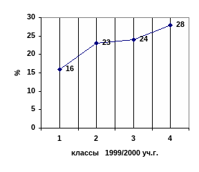 Таблица 1в. Динамика изменения школьной мотивации учащихся НШ №1 2-4 классов 1999-2000г.г.