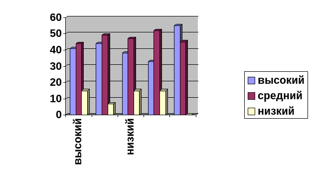 Мы видим, что интеллектуальный уровень существенно не влияет на уровень школьной мотивации в младшем школьном возрасте. Так из 17 человек, имеющих низкий интеллектуальный уровень, 35% детей имеют высокий уровень школьной мотивации, 18% - хороший уровень, 29% - внешний уровень, 18% - низкий уровень мотивации. Отразим на гистограмме: Выводы: По результатам проведенного исследования видно: Что высоких показателей в учебе добиваются школьники с высокой школьной мотивацией. Слабоуспевающие школьники имеют как высокую, так и низкую мотивацию. Низкая успеваемость не является основным фактором низкой школьной мотивации, а также негативного отношения к школе. Существует динамика школьной мотивации от 1 до 4 класса. Существует разница школьной мотивации у мальчиков и девочек. Интеллектуальное развитие не является главным фактором развития мотивации учащихся в младшем школьном возрасте. Приложение I Анкета По оценке уровня школьной мотивации учащихся начальной школы (1-4 класс) Тебе нравится в школе или не очень ? а) не очень б) нравится в) не нравится Утром когда ты просыпаешься, ты всегда с радостью идешь в школу или часто хочется остаться дома ? а) чаще хочется остаться дома б) бывает по-разному в) иду с радостью Если бы учитель сказал, что завтра в школу не обязательно приходить всем ученикам, желающим можно остаться дома, ты пошел бы в школу или остался дома? а) не знаю б) остался бы дома в) пошел бы в школу Тебе нравится, когда у вас отменяют какие-нибудь уроки ? а) не нравится б) бывает по разному в) нравится Ты хотел бы, чтобы тебе не задавали домашних заданий ? а) хотел бы б) не хотел бы в) не знаю Ты хотел бы, чтобы в школе остались одни перемены ? а) не знаю б) не хотел бы в) хотел бы Ты часто рассказываешь о школе родителям ? а) часто б) редко в) не рассказываю Ты хотел бы, чтобы у тебя был строгий учитель ? а) точно не знаю б) хотел бы в) не хотел бы У тебя в классе много друзей ? а) мало б) много в) нет друзей Тебе нравятся твои одноклассники ? а) нравятся б) не очень в) не нравятся