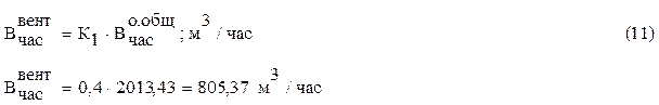 где: К – коэффициент, учитывающий расход тепла на отопление общественных зданий, К=0,25. Максимальный часовой расход газа на вентиляцию общественных зданий при tv :