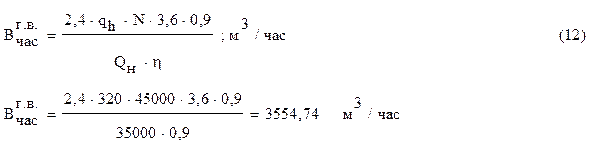 где: qh – укрупнённый показатель среднечасового расхода тепла на ГВС, Вт на одного человека с учётом общ. зданий района прил.4, [3], qh = 320 Вт Суммарный расход газа на районные котельные составит: