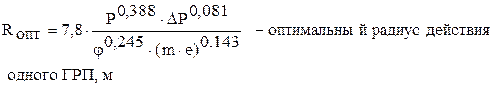 + Вср.д. = 3370,3 + 66,9 + 120,9 + 8689,7 + 138,7 + 8000 = 20386,5 м3 /ч 3. Выбор количества ГРПДля ГРП, питающих сеть низкого давления, оптимальная производительность Вопт = 1500-2500 м3 /ч, оптимальный радиус действия Rопт = 0,5 - 1 км. Количество ГРП определяется по формулам: