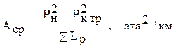 Аср – среднее квадратичное падение давления до наиболее удалённого потребителя, ата2 /км; Рн , Рк.тр – давление в начале и в конце рассчитываемого газопровода, ата. Lp = 1,1LД – расчётная длинна газопровода, км. Конечное давление определяют: РК