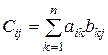 Умножение матриц. Результатом умножения матриц А и В является матрица С элементы которой равны сумме произведений элементов в соответствующей строке первого множителя и столбце второго.