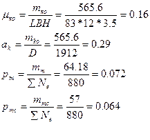 - относительное значение длин форпика и ахтерпика, машинного отделения и люкового закрытия трюмов соответственно. - относительные значения суммарной ширины бортового набора и ширины люка; - относительные значения палубного и днищевого набора; - относительное значение высоты комингса люка. Используя среднестатистические значения указанных параметров, приведённых в Приложении 10, принимаем для данной работы :