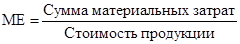Данные анализа (таблица 3.7.) показали, что предприятие значительно увеличивает оплату труда работникам, в отчетной году, по сравнению с предыдущим на 67%, т.е. на 12 тыс. руб., не смотря на незначительное увеличение численности работников на 0,7%, т.е. на 10 чел. Эти данные показывают, что предприятие несет большие трудовые затраты, что сказывается на себестоимости продукции и соответственно на прибыли предприятия. 3.4 Анализ использования материальных ресурсов Задание: Определить общую материалоемкость продукции и влияние ее изменения на использование материалов и объем продукции. В процессе потребления материальных ресурсов в производстве происходит их трансформация в материальные затраты, поэтому уровень их расходования определяется через показатели, исчисленные исходя из суммы материальных затрат. Для оценки эффективности материальных ресурсов используется система обобщающих и частных показателей. Материалоемкость продукции (МЕ)