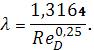 Блазиус в 1913 г. на основании обработки многочисленных опытов по исследованию движения жидкости в круглых гладких трубах при числах Рейнольдса от 4000 до 100000 установил эмпирическую зависимость: