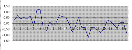 ВЫВОД: Т.к. расчетный критерий Фишера меньше табличного, значит гетероскидостичность отсутствует, остатки имеют постоянную дисперсию.