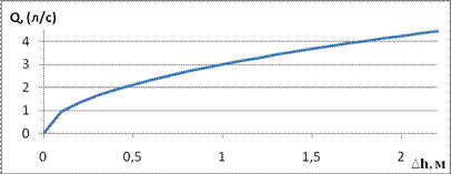 Определяем рабочую точку (точку пересечения графиков): точка А. Рабочий расход насоса: QН = 2,2 ; Рабочий напор насоса: НН = 21,4 (м). Определяем скорость напора через насадок: ; Определяем высоту фонтана: