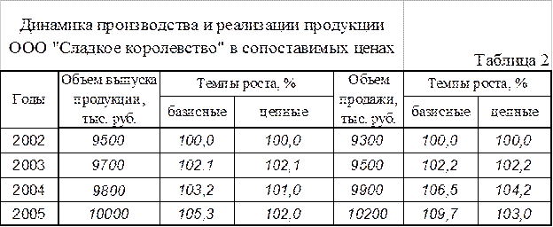 Т’пр = Т’р – 100% В соответствии с данными формулами среднегодовой темп роста и прироста производства ООО «Сладкое королевство» составили: