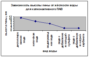 Полученные в ходе опыта результаты занесены в таблицу 2 Таблица 2. Влияние жёсткости воды на пенообразование и устойчивость пены для катионактивных ПАВ (тетраалкиламмоний-хлорид).