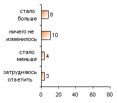 Тех, кто упоминал о межнациональных конфликтах, произошедших там, где они живут, попросили ответить, изменилось ли число столкновений на национальной почве за последний год. Почти половина из упомянувших о конфликтах (10% по выборке) считают, что их число не изменилось, чуть меньшая доля (8%) сказали, что конфликтов стало больше, и 4% – что меньше.