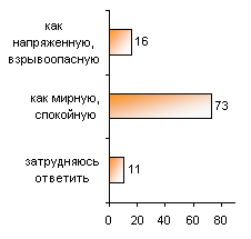 А если говорить в целом о Вашем городе (поселке, селе), то как бы Вы оценили ситуацию с межнациональными отношениями - как напряженную, взрывоопасную или как мирную, спокойную?