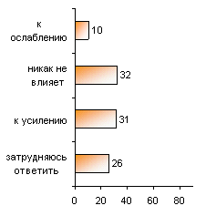 Как Вы считаете, подробное освещение межнациональных конфликтов на телевидении, радио, в газетах ведет к ослаблению или к усилению межнациональной розни в России? Или освещение в средствах массовой информации никак на это не влияет?