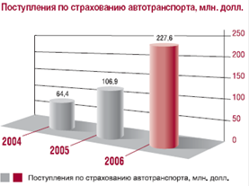 Рис. 11. Общие поступления премий и взносов по автотранспорту. В программу «автокредит» входят такие страховые продукты, как: - ОСАГО; - КАСКО. ОСАГО - это обязательное страхование автогражданской ответственности владельцев транспортных средств. Т.е. в случае ДТП, вне зависимости от того, кто был виновен, страховая компания покрывает убытки по причиненному ущербу имуществу или жизни и здоровью потерпевшего.