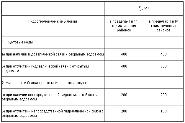 где: R - радиус влияния шахтного колодца; S - понижения уровня воды при откачке m - мощность пласта Кф - коэффициент фильтрации. R=2S√44*2.5=146,83 м Вычисляем среднюю мощность водоносного пласта по формуле: Нср = Н - S/2 где: Нср- средняя мощность водонапорного водоносного пласта во время откачки воды. Нср =18,6-7/2= 15,1 м Определим дебит шахтного колодца: Q=П*Кф(2Н-S)S/ln1.65R/r+Ek Q=3.14*44(2*18.6-7)7/ln1.65*146.83/0.9+2.5=3605.8 Площадь водоприемной части днища колодца определяется по формуле: