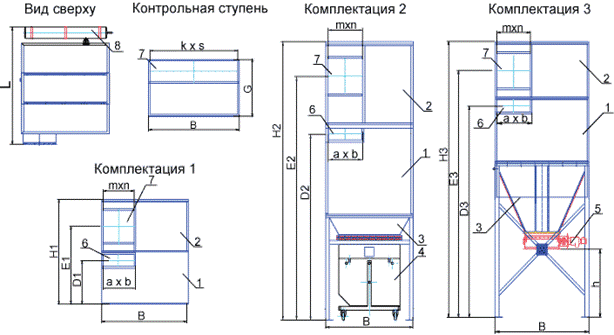 Схема 1. Комплектации и внешний вид кассетных фильтров.