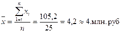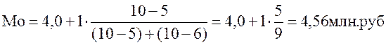 где хМo – нижняя граница модального интервала, h – величина модального интервала, fMo – частота модального интервала, fMo-1 – частота интервала, предшествующего модальному, fMo+1 – частота интервала, следующего за модальным. Согласно табл. 4 модальным интервалом построенного ряда является интервал 4,0 – 5,0 млн. руб., т.к. он имеет наибольшую частоту (f4 =10). Расчет моды: