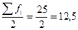 =19 впервые превышает полусумму всех частот ( Расчет медианы: