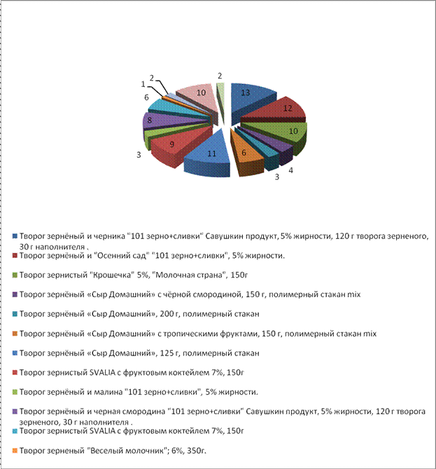 Структура ассортимента творога, реализуемого в магазине «Магнит», представлен на рисунке.