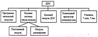 Программа начальной загрузки находится в первом секторе на нулевой дорожке системного диска. Она занимает объем 512 байт. После включения компьютера и его проверки постоянный модуль BIOS формирует вызов данной программы и ее заруск. Назначением программы начальной загрузки является вызов модуля расширения IO.SYS и базового модуля MS DOS.sys. : Размещается : в 1-м секторе 0-дорожки 0-стороны системной дискеты, в 1-м секторе HDD-диска, в разделе, отведенном под DOS. Просматривает КОРНЕВОЙ каталог системного диска. Проверяет, являются ли первые два файла в каталоге - файлами IO.sys и MSDOS.sys. Если ДА - загружает их в ОЗУ и передает управление MS DOS.Если НЕТ - сообщение на экране и ожидание нажатия какой-либо клавиши Пользователем Базовая система ввода-вывода (BIOS) является надстройкой аппаратурной части компьютера. Постоянный модуль BIOS отвечает за тестирование компьютера после его включения, вызов программы начальной загрузки. Модули BIOS обрабатывают прерывания вычислительного процесса нижнего уровня и обслуживают стандартную периферию: дисплей, клавиатуру, принтер, дисководы. Модуль расширения BIOS обеспечивает подключение к компьютеру дополнительных периферийных устройств, изменение некоторых параметров ДОС, замещение некоторых стандартных функций, загрузку командного процессора и его запуск. Базовый модуль ДОС (MS DOS.sys или IBM DOS.com) отвечает за работу файловой системы, обслуживает прерывания верхнего уровня (32...63), обеспечивает информационное взаимодействие с внешними устройствами. Командный процессор (command.com) предназначен для выполнения команд, загружаемых в командную строку ДОС. Все команды ДОС делят на внутренние и внешние. Внутренние команды содержатся внутри самого файла command.com. Внешние команды - это требования запуска каких-либо программ, находящихся на дисках. Кроме этого, командный процессор выполняет команды файла autoexec.bat, если он находится на системном диске. Файл autoexec.bat содержит список команд, выполнение которых позволяет развернуть в оперативной памяти компьютера некоторый набор вспомогательных программ или пакетов для обеспечения последующей работы пользователя. Файл config.sys отражает специфические особенности формирования конфигурации компьютера, т.е. состава его технических и программных средств. 16. Файловая система ДОС. Принцип построения. Примеры. 17.Дисковая операционная система (ДОС). Внутренние команды ДОС. Организация диалога с пользователем. Примеры. Внутренние команды содержатся внутри самого файла command.com. Примером внутренних команд ДОС могут служить такие команды как: просмотр файла, копирование файла, удаление файла, просмотр каталога и др. Диалог пользователя с ДОС осуществляется в форме команд. Каждая команда пользователя означает, что ДОС должна выполнить то или иное действие, например, напечатать файл или выдать на экран оглавление каталога. Команда ДОС состоит из имени команды и , возможно, параметров, разделенных пробелами. Имя команды ДОС и параметры могут набираться как прописными, так и строчными буквами. Ввод каждой команды заканчивается нажатием клавиши ENTER. 18.Дисковая операционная система (ДОС). Внешние команды .Примеры. Внешние команды ДОС – это программы, поставляемые вместе с операционной системой в виде отдельных файлов. Эти программы выполняют действия обслуживающего характера, например форматиров