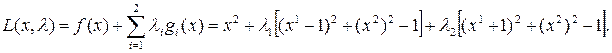 Система уравнений (16) представляет собой необходимые условия первого порядка в задаче на относительный экстремум, а ее решения Заметим, что требование неравенства нулю якобиана (11) является существенным. Пример 1. Условие (11) может быть не выполнено, если решение задачи на относительный экстремум реализуется, например, в точке касания поверхностей ограничений (10) (начало координат на рис. 1).