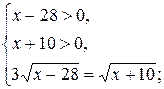 x = Ответ: 1. x = 1, 1 = 1 · Иррациональные логарифмические уравнения: а) Решить уравнение lg3 + 0,5lg(x – 28) = lg Решение. lg3 + 0,5lg(x – 28) = lg lg(3 Учитывая ОДЗ, данное уравнение равносильно системе: