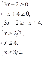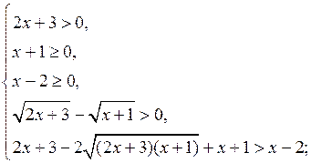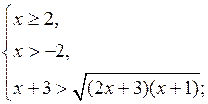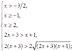 x Учитывая ноль подкоренного выражения, данное уравнение равносильно двум системам: