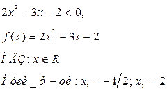 0,5x(x – 3) < 2, 0,5x2 – 1,5x – 2 < 0, x2 – 3x – 4 < 0, f(x) = x2 – 3x – 4, ОДЗ