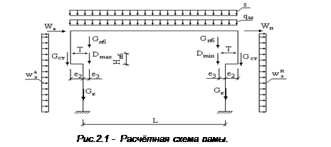 1.6. Стеновое ограждение Разбиваем высоту Н = 12,6 м кратно ширине панели равной 1,8 м [1, табл.2]: 12,6/1,8 = 7 шт. (рис. 1.3). Назначаем стеновые панели толщиной δ = 30 см, массой 4,9 т. Нижняя цокольная панель устанавливается на фундаментную балку. Выше устраивается оконный проем высотой 1,8 Размер двух принятых панелей 1,2х2=2,4 > 1,25 м. 2. СТАТИЧЕСКИЙ РАСЧЕТ ПОПЕРЕЧНОЙ РАМЫ 2.1. Расчетная схема Приводим конструктивную схему рамы к расчетной (рис. 2.1).