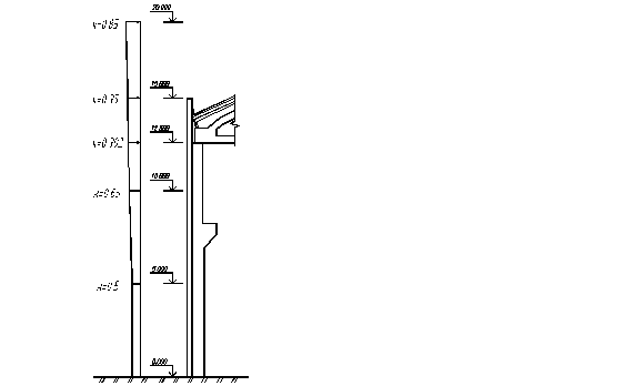 6. Отношение жесткостей соседней колонны 7. Отношение нижней части соседней колонны к нижней части рассматриваемой колонны. Т.к. здание однопролётное, то : 3 строка 8. Эксцентриситет оси верхней части колонны (рис. 3.1): е1 = -0,5(В-А) = -0,5(0,7-0,6) = -0,05м; 9. Эксцентриситет стены е2