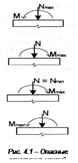 Ниже приводятся наиболее опасные сочетания усилий (рис. 4.1), найденные по наибольшим ядровым моментам (табл. 4.2):