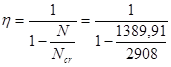 Так как система статически неопределима, принимаем наибольшее значение: е0 =0,258 м. Критическая сила определяется по формуле: