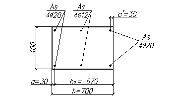 Предварительно принимаем случай больших эксцентриситетов. Так как изгибающий момент отрицательный (-213,1 кНм), то растянутая арматура As