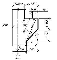 Рис. 6.2 - Схема подколонника. Глубина стакана 1. Глубина стакана колонны при