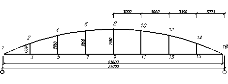 + где Нcr =3,15м – высота крана, Нcr , B =0,8 м - высота подкрановой балки при шаге колонн В = 6 м; hr = 0,12 м - высота подкранового рельса Кр70 для мостовых кранов грузоподъемностью до 50 т, Δ= 0,1м – зазор, учитывающий возможный прогиб фермы. Принимаем Н2 = 4300м.