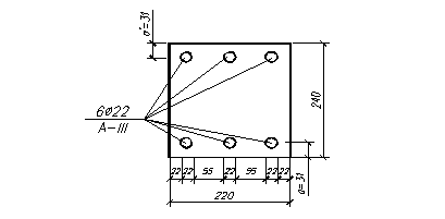 Рис.6.6 - Вертикальная арматура подколонника Усилия у обреза фундамента по наибольшему ядровому моменту [табл.6,1]: M = -234,5 кНм; N = 873,1 кН; Q = 35,71 кН.. В сечении 1-1: