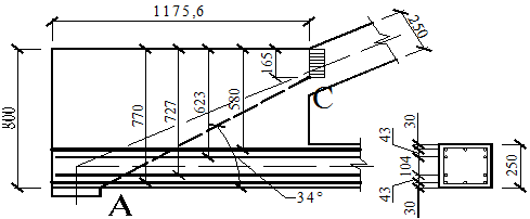 Для третьего сочетания 3-й случай поворота: М = 205,9 кНм; N = 540,73 кН; Q = 41,94 кН.