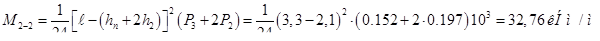 Рис.6.5 - Расчетная схема работы плиты на изгиб в плоскости рамы. Сечение 2-2