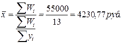 2. Рассчитаем среднюю рентабельность реализованной продукции = (прибыль / объем реализованной продукции)*100%. Так как нам известен знаменатель этой логической формулы, но неизвестен числитель, то мы применяем среднюю арифметическую