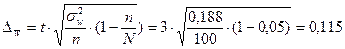 Определим предельную ошибку выборки для доли по формуле: