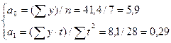 Для определения типа модели тренда используем уравнение прямой: