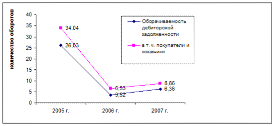 Для наглядного отображения показателей оборачиваемости дебиторской задолженности можно использовать динамику показателей, которые были использованы в анализе [Приложение 6]. Для того чтобы определить, сколько оборотов совершила дебиторская задолженность в течение года, в данном случае используют показатель оборачиваемости дебиторской задолженности: