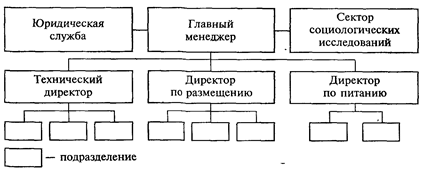 Рис. 1.2. Линейно-функциональная структура управления Основные службы гостиницы. Для осуществления замкнутого технологического цикла обслуживания гостей (рис. 2.8) в гостинице предусмотрены следующие основные службы: - бронирования; - обслуживания; - приема и расчетная часть; - служба эксплуатации номерного фонда; - служба питания. Это минимальный набор служб, обеспечивающих предоставление основных услуг в гостинице. Технологический цикл обслуживания гостей представлен на рисунке