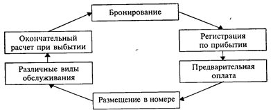 Рис.1.3. Технологический цикл обслуживания гостей При расширенном наборе услуг, сюда может входить - служба по оказанию лечебно-оздоровительных услуг; - отдел по организации досуга.