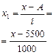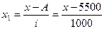 Воспользуемся свойством дисперсии, согласно которому уменьшение (увеличение) каждого значения признака на одну и ту же постоянную величину не изменяет дисперсии. Применяя это свойство, можно исчислить дисперсию не по заданным вариантам, а по отклонениям их от какого-то числа. В рядах распределения с равными интервалами принято за постоянное число брать варианту ряда с наибольшей частотой. В данном случае это А=1250. Отнимая это число от каждой варианты, получим остальные значения признака. Затем уменьшим все варианты в несколько раз. Таким кратным числом является величина интервала Для расчета дисперсии нам необходимо также найти последовательно значения Теперь исчислим дисперсию по формуле: