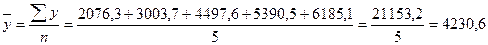 Из таблицы видно, что оборот розничной торговли г.Северодвинска за период с 1999г. по 2003 г. увеличился с 2076,3 млн.руб. до 6185,1 млн.руб., т.е. на 4108,8 млн.руб. Абсолютная скорость роста оборота розничной торговли определяется показателем абсолютным приростом. Например, абсолютное увеличение розничной торговли в 2001г. по сравнению с 2000 г. составило 1493,9 млн.руб., а по сравнению с 1999г. – 2421,3 млн.руб. Интенсивность изменения уровней ряда динамики оценивается темпом роста или коэффициентом роста. Для 2001 г. темп роста розничной торговли по сравнению с 2000 г. составляет 149,7%. Для выражения изменения абсолютного прироста уровней ряда в относительных величинах определяется темп прироста (только в процентах). Темп прироста розничной торговли в 2001г. по сравнению с 2000 г. составляет 49,7%. При анализе относительных показателей динамики (темпов роста и темпов прироста) не следует рассматривать их изолированно от абсолютных показателей (уровней ряда и абсолютных приростов). Сравнение абсолютного прироста и темпов прироста за одни и те же периоды времени показывает, что замедление темпов прироста не всегда сопровождается уменьшением абсолютных приростов. Поэтому, чтобы правильно оценить значение полученного темпа прироста, его рассматривают в сопоставлении с показателем абсолютного прироста. Результат выражают показателем, который называют абсолютным значением одного процента прироста (А i ). Для 2001 г. абсолютное значение одного процента прироста составляет 30,06 млн.руб. Умножая величину абсолютного значения одного процента прироста на величину темпа прироста (цепного) получим абсолютный прирост, т.е. 30,06*49,7=1433,86 млн.руб. Для характеристики интенсивности развития за длительный период рассчитываются средние показатели. 2. Рассчитаем средние показатели: · Вычислим среднегодовой оборот розничной торговли за данный период: