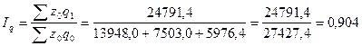 Из произведенных расчетов видно, что затраты на производство изделия А сократились на 6,7%, в то время как на изделия Б и В возросли (соответственно на 11,2% и 6,6%). Определим общие (сводные) индексы себестоимости, физического объема продукции и затрат на производство. Общий индекс себестоимости единицы продукции определим по формуле