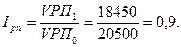 Таблица 2.1 Исходные данные для факторного анализа прибыли от реализации продукции, тыс.руб. Сначала нужно найти сумму прибыли при фактическом объеме продаж и базовой величине остальных факторов. Для этого следует рассчитать индекс объема реализации продукции, а затем базовую сумму прибыли скорректировать на его уровень. Индекс объема продаж исчисляют путем сопоставления фактического объема реализации с базовым в натуральном (если продукция однородная), условно-натуральном или стоимостном выражении (если продукция неоднородна по своему составу). На данном предприятии его величина составляет: