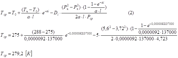 Подставив коэффициент а в выражение (2), найдем среднюю температуру газа на перегоне.